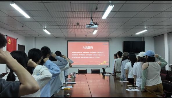 仪式前,学习了习近平总书记关于加强党的作风建设的重要论述,观看了微视频《3.7克有多重》,加强了党员思想修养,提高了思想觉悟,强化了党员身份意识。预备党员彭新梦同志发言,她结合自身成长经历,表达对党组织培养的感激,承诺时刻牢记党员身份,在学习生活中发挥先锋模范作用。