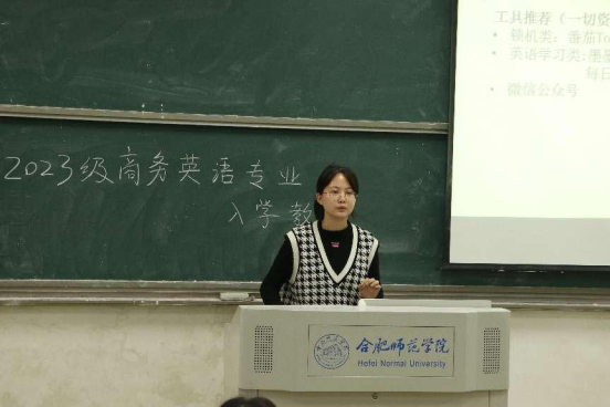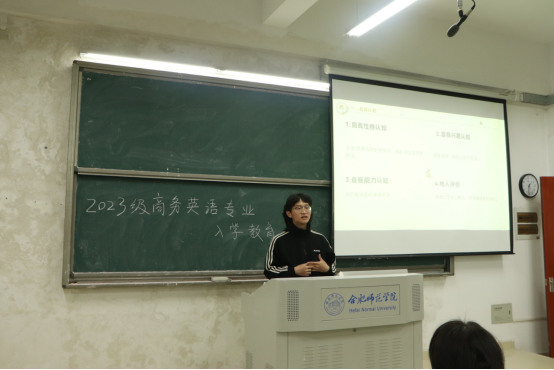 为了引导新生有序做好学业规划、树立职业素养意识、同时发挥朋辈教育在学风建设中的重要作用,11月8日下午,商务英语系在滨湖校区博学楼A206教室召开入学教育交流会。全体2023级商务英语新生参加此次会议,会议由商务英语系主任史以一主持,优秀学生代表胡子涵、江海静、岳真真、柳婉琪分别进行了主题分享,部分商务英语系教师出席此次会议并作同期交流。
