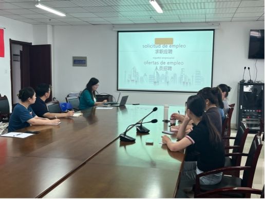 9月20日下午,西班牙语系在行知楼1002室举行了《企业西班牙语实务》课程的磨课活动。张弩老师详细介绍了教学流程及授课内容,与同事们共同讨论教学改进意见,特别强调了增加师生互动环节的重要性,以提高学生课堂参与度,更好地呈现课程的实际应用价值。本次磨课为未来的公开课做好了充分准备,公开课将聚焦于“西班牙语应聘面试”主题。