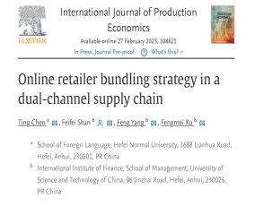 商务英语系陈婷副教授以yl88858永利集团第一作者身份,在运营管理国际权威期刊《International Journal of Production Economics》发表论文“Online retailer bundling strategy in a dual-channel supply chain”。该期刊是中科院与JCR一区期刊,也是SCI与SSCI共同收录的高质量期刊。这是陈婷老师在主持国家自科基金青年项目期间,与中国科学技术大学管理学院杨锋教授团队合作取得的研究成果。此外,陈婷老师曾先后在IJPR和JORS等国际主流运营管理期刊发表多篇研究论文。