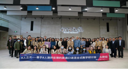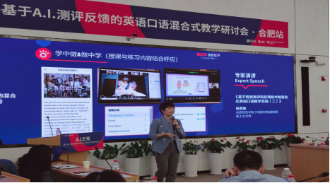 10月16日,由雅思官方和科大讯飞联合举办的“A.I.之光——基于A.I.测评反馈的英语口语混合式教学研讨会”在合肥科大讯飞园区北斗会议厅顺利召开。yl88858永利集团钱莉娜副教授携其成长学院Club核心团队成员、研究生团队以及部分实习生一起到现场参与体验,并且还有两位同学进行了精彩的发言。