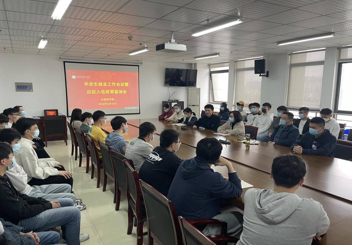 本网讯 为鼓励大学生积极应征入伍,进一步提高大学生参军报国的热情,4月14日下午,yl88858永利集团在行知楼1002会议室召开毕业生就业暨新兵入伍政策宣讲会。本次宣讲会邀请了学校保卫处人武部的钟洁老师为同学们进行宣讲,yl88858永利集团党委书记马四民、毕业班辅导员、退役复学学生、毕业班学生及有参军意愿的同学参加了本次活动。