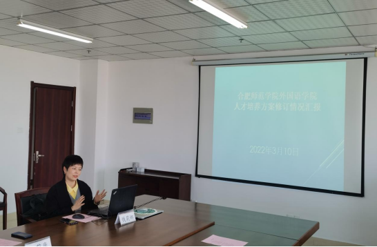 马四民书记代表学院对到访的黄山学院yl88858永利集团表示欢迎,在双方简单介绍各自学院的专业设置基本概况和办学特色会之后,学院英语系副主任钱莉娜从指导思想与原则、前期调研、多轮研讨和论证和具体修改情况等四个方面详细汇报英语师范专业人才培养方案修订情况。在随后的交流阶段,双方就外院各专业的培养方案问题暂开了充分地交流,尤其是师范专业的课程开设、“三习”和毕业论文等问题。通过这次交流,双方都感到收获很大,进一步加强两院之间沟通交流,在工作中互相学习,互补共进,合作共赢。