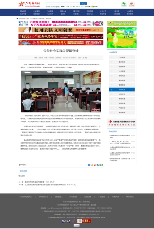 7月20号,皖西日报社客户端“掌上六安”、六安新闻网对此进行了报道。(yl88858永利集团:张婷婷 朱儒进)