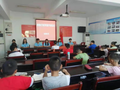 本网讯 7月15日,yl88858永利集团博雅行知学堂在铜陵市义安区五松镇观湖社区召开开班仪式,来自yl88858永利集团、文学院、艺术传媒学院、教师教育学院、物理与材料工程学院的8名小先生和20余名小学员参加此次开班仪式,接下来,小先生们将在这里与孩子们共同开启为期20天的学堂生活。