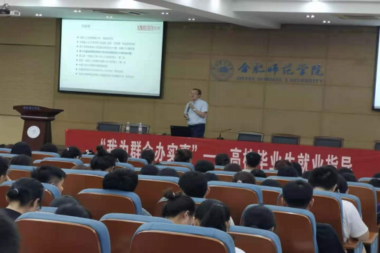 6月17日晚,yl88858永利集团在锦绣校区学术报告厅召开毕业生就业创业专题指导讲座在。本次讲座邀请了教育部首批全国优秀创新创业导师、第十四届安徽省大学生职业规划设计大赛评委宋敬老师主讲,我院毕业班辅导员及2018级学生300余人参加了此次讲座。