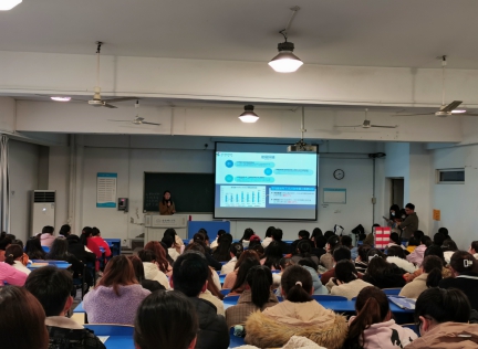 随后,亚声威格人力资源部招聘主管宛静进行招聘宣讲,她向同学们介绍了亚声威格电子科技有限公司的概况、发展规模、招聘岗位、职业发展前景、薪资待遇等。毕业生们认真聆听,主动向招聘单位了解用人情况,并结合自身实际情况积极与招聘人员进行面对面交流,为自己的就业做出理性判断。