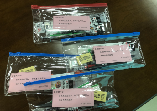 会议由周贵勤老师主持,硕士研究生考试是大四学子在人生中面临的重要考试之一,同学们也为考试付出了很多努力。学院购买了一些考研“福袋”,里面装了一些考试用品和祝福卡片,借此给学院每一位考研的同学送去鼓励和祝福。
