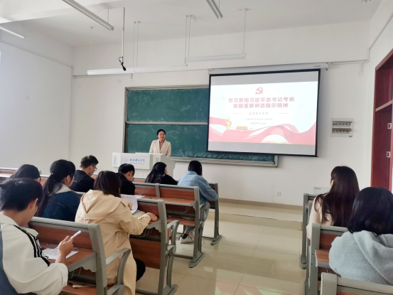 会上,冯晓敏带领同学们认真学习《习近平在安徽考察时强调坚持改革开放坚持高质量发展在加快建设美好安徽上取得新的更大进展》文件内容,并从两个方面介绍了习近平总书记考察安徽重要讲话中的丰富内涵和重要意义。她强调要全面把握、深入理解习近平总书记讲话中的重要精神,要将讲话精神与自身发展实际相结合,努力做到融会贯通。