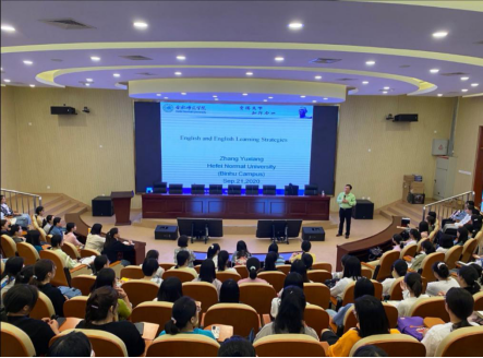在讲座现场,张宇翔教授还邀请部分同学进行问答,积极与新生进行交流互动,让新生能够亲身感受英语专业学习的特点。