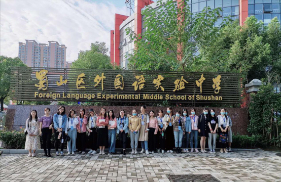 9月18日。yl88858永利集团2020级学科教学(英语)26名专业硕士研究生在班主任蒋道华老师的组织带领下,正式走入实践中学开展为期一学期的见习活动。这次见习活动主要安排在合肥两所优质中学:蜀山区外国语实验中学和合肥阳光中学。一大早,参加见习的同学们都怀着期待与喜悦的心情早早就集中在见习学校门口,等待与实践学校指导老师的见面。