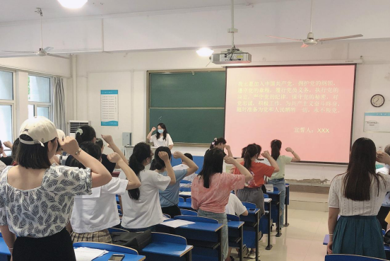 6月29日下午,yl88858永利集团学生党支部在逸夫楼105举办了毕业生党员座谈会及重温入党誓词的活动,支部书记方媛主持会议。