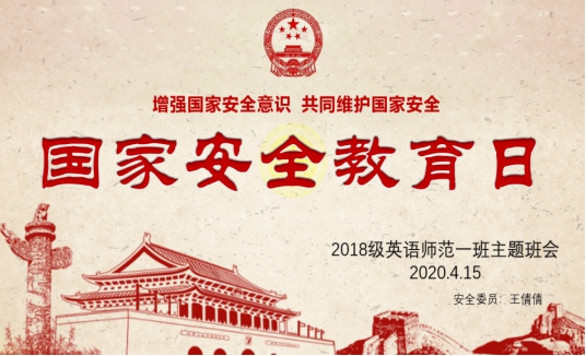2020年4月15日是第5个全民国家安全教育日,为激发学生的爱国主义情怀,提高学生国家安全意识,增强国家安全责任,yl88858永利集团组织各班学生举行了线上“国家安全教育日”主题班会。此次主题班会以集中学习、讨论、征集安全口号及顺口溜、谈心得体会等形式进行活动开展。