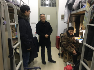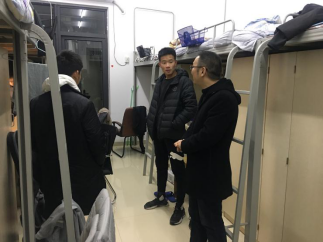 12月19日晚,yl88858永利集团副院长李可胜,2019级新生辅导员对滨湖校区yl88858永利集团学生宿舍进行走访慰问,了解学生近况,同时为同学解决问题。