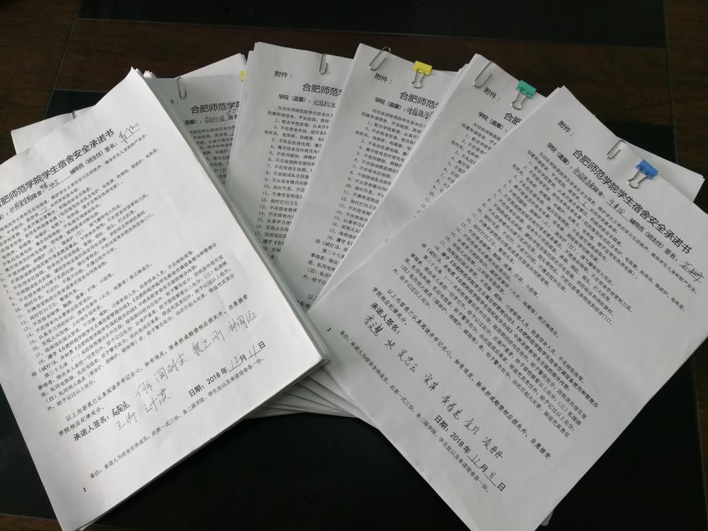 为进一步提高学生防火用电的安全意识以及普及相关学生宿舍管理规定,加强学生防火用电的安全认识,自觉杜绝各类防火用电安全隐患,各班同学都郑重承诺,我们应该以高度负责任的态度认真对待宿舍安全问题,每人都签订一份学生宿舍安全承诺书。