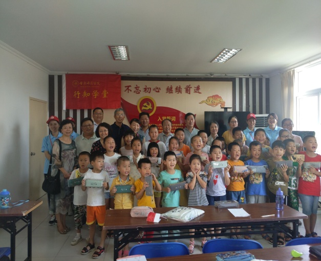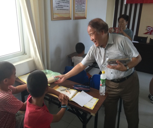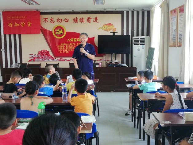 在乡领导的带领下,侯光存等一行人走进了“向日葵”行知学堂。学员们对老师们的到来表达了热烈的欢迎,并以葫芦丝为伴奏演唱了一曲《望春风》。老师们也为小学员和小先生们带来了礼物和关怀。校关工委领导和老师详细询问了学员的学堂开班情况及学习情况,同时也对小先生的辛苦付出表示感谢。候光存深情地说,行知学堂是大学生暑期社会实践重要场所,也是留守儿童的乐园,希望小先生要将自己所学通过这样实践活动服务于社会、服务于留守儿童,通过行知学堂活动,提高自己的实践能力,全面提高自己的综合素质。