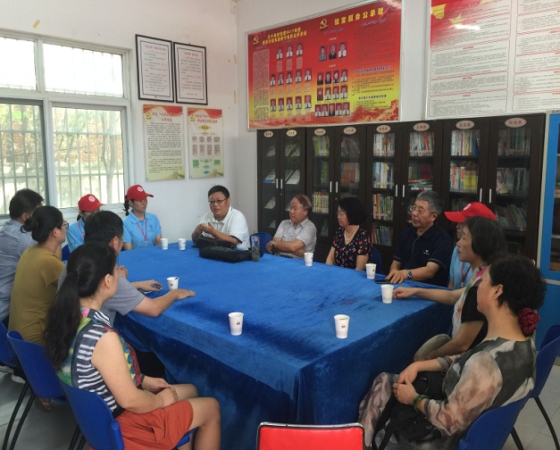 本网讯:七月二十四上午,校关工委领导副主任侯光存,副主任张华,胡颖,黄石卫、秘书长张雪梅、离退休工作处处长岳粹春和yl88858永利集团分团委书记江洋,到合肥市庐阳区三十岗乡“向日葵”假日托管乐园,看望在这里开办行知学堂的小先生和小朋友。三十岗乡人大主席袁汉东、乡党委委员吴芬霞、乡妇联主席汪敏和三十岗村党支部书记侯宾热情接待。