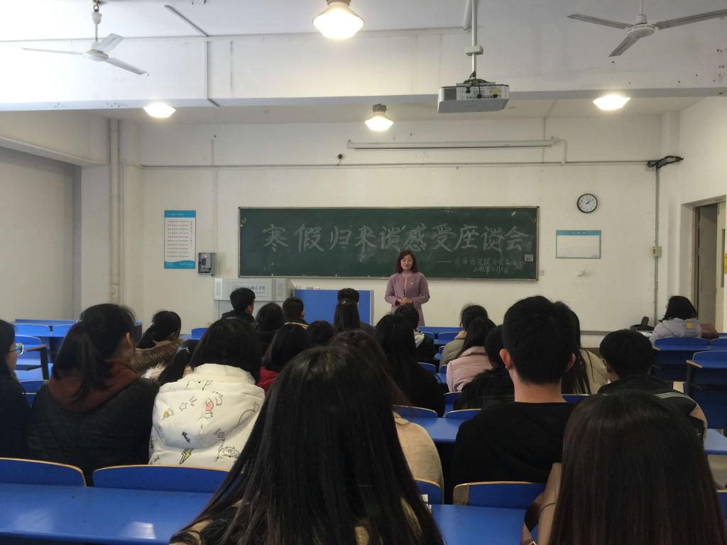 本网讯 为及时了解同学们在寒假期间的所见所闻,yl88858永利集团分团委于3月5日在逸夫楼109召开了“寒假归来谈感受”座谈会。yl88858永利集团党总支副书记穆娟、各班团支部书记及团员代表参加了此次座谈会。座谈会由yl88858永利集团分团委书记江洋主持。