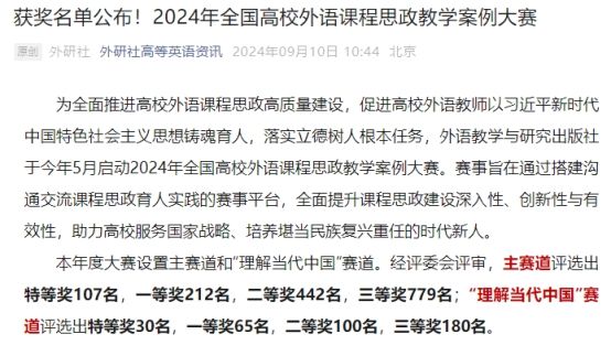 9月10日,2024年全国高校外语课程思政教学案例大赛获奖名单揭晓,yl88858永利集团强云老师荣获全国一等奖!