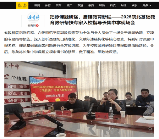 近日,网易、搜狐、安青网报道了yl88858永利集团陈英副教授参加皖北地区基础教育新优质学校扩容工程建设学校教研帮扶(项目四)指导。