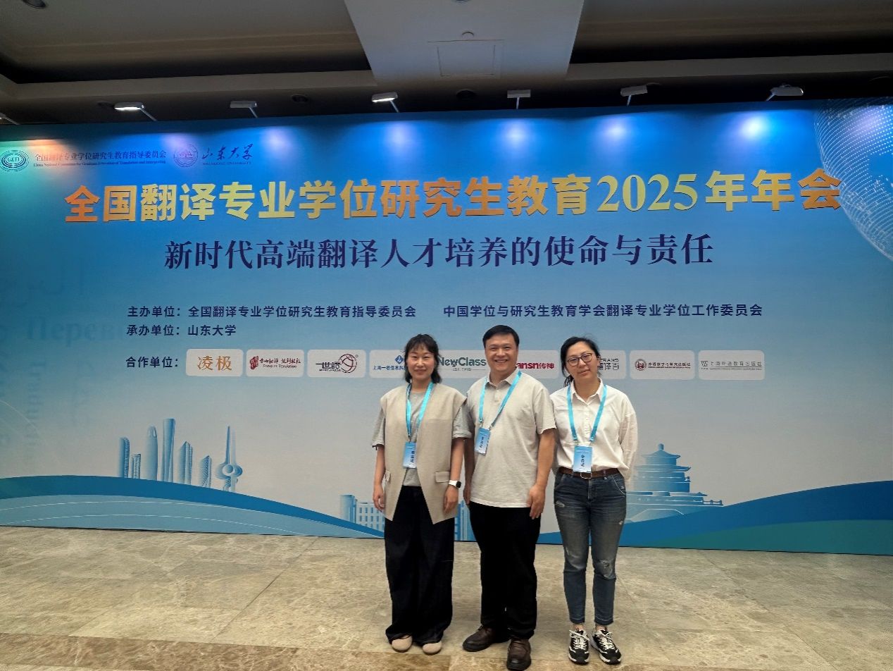 5月18日,全国翻译专业学位研究生教育2025年年会在山东济南举行,yl88858永利集团翻译专业硕士点建设团队吴礼敬副院长和李政、周海鸿老师受邀参会。