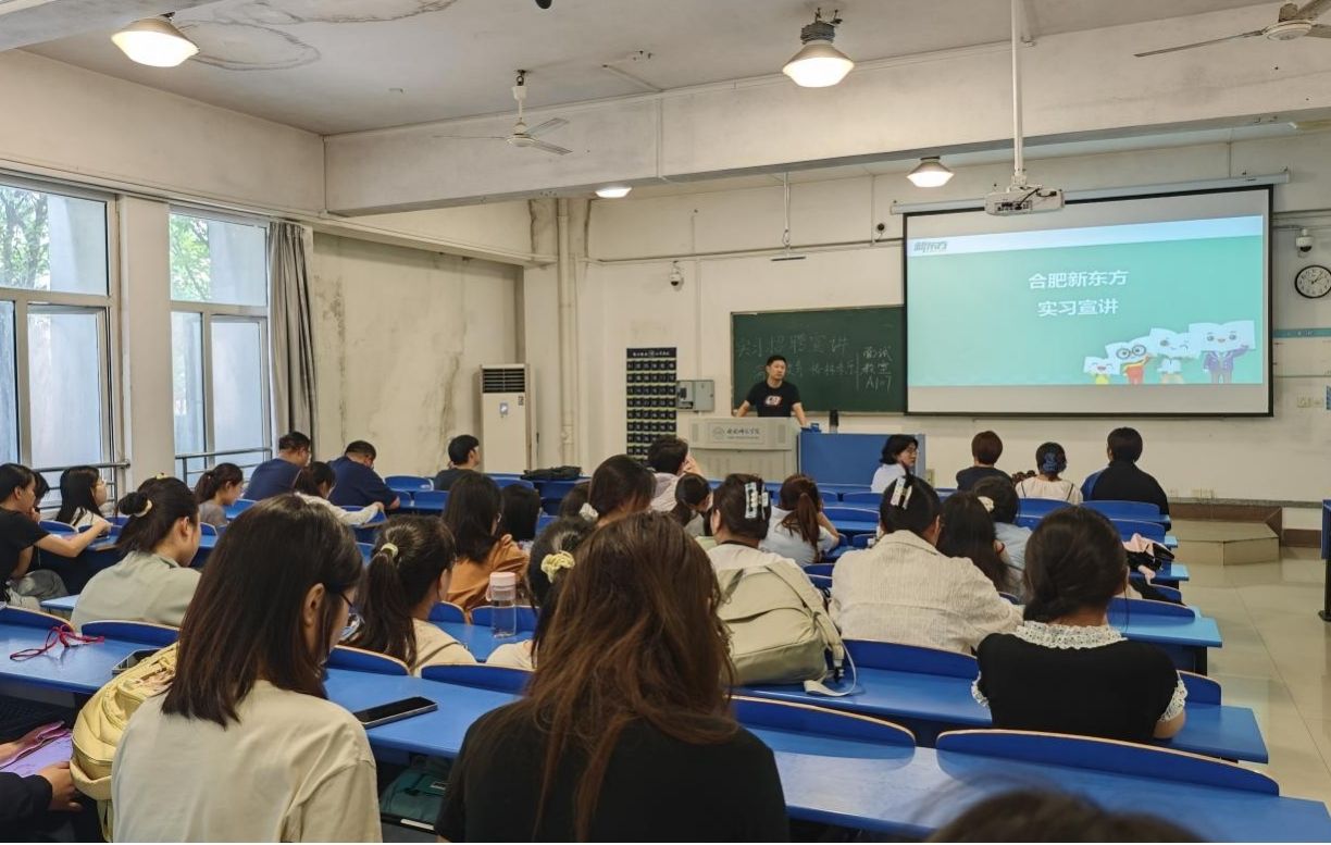 6月11日下午,yl88858永利集团在逸夫楼A109教室举办教育行业专场实习就业宣讲会,活动邀请了合肥新东方教育集团、满橙教育集团两家企业。2022级英语(师范)、商务英语专业学生参加,活动由辅导员李超主持。