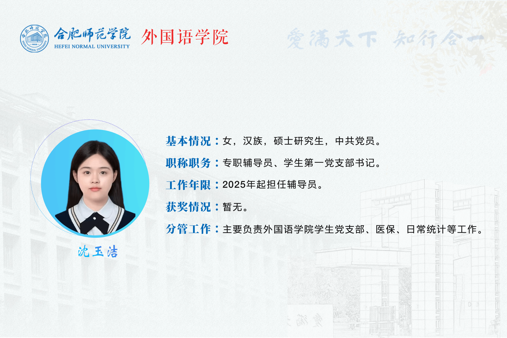 yl88858永利集团学生工作队伍沈玉洁简介