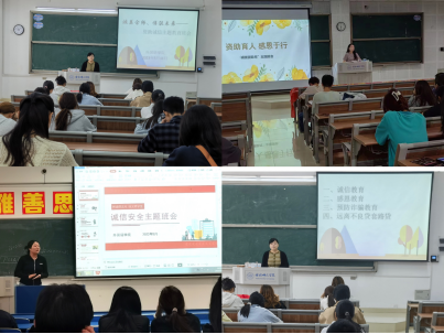 各年级辅导员结合本年级实际情况召开资助诚信主题班会,班会上,辅导员将诚信感恩教育、资助政策宣传、金融知识普及与预防诈骗教育相结合,通过讲述故事、播放视频的方式,向同学们宣传资助政策和征信知识,进一步增强学生的诚信责任意识和安全防范意识。