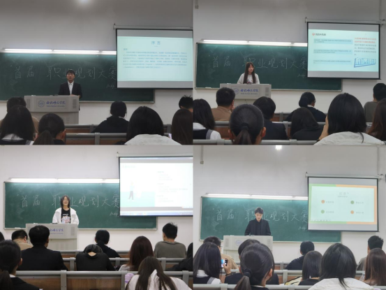 经初赛选拔后,共有二十四位选手参加院级决赛。选手们结合PPT的内容,从职业认知、自我分析、成长途径、行动成果、反馈调整等方面展示着自己的未来职业蓝图。在汇报过程中,选手们思路清晰、表达流畅、规划详细、思虑周全,科学运用各项专业的测试,对将要从事的职业做出客观的规划,赢得了在场观众的掌声。
