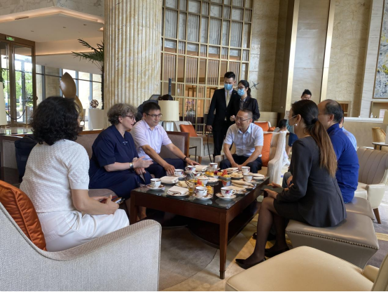 在合肥栢景朗廷酒店,酒店总经理Hildegard Anzenberger、人力资源部总监崔静对周端明一行表示欢迎。双方就当前就业形势、企业对人才的需求等展开研讨。